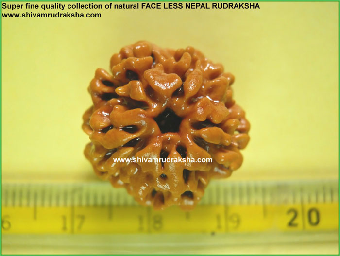 Enlightens the super consciousness changes specific to renunciation from worldly affairs. Face Less Rudraksha is symbol of Shiva. Only few trees of rudraksha can produce face less rudraksha. One of the treasures of Pashupatinath temple is Face Less Rudraksha, which is well preserved, and devotee get chance to see it once in a year. It is said that owner of Face Less Rudrakshaenjoy all kinds of worldly pleasures. It is very auspicious valuable and rate it is enought if one can see it once.