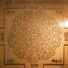Sri Maha sudarshan Yantra is the Prime Protective Yantra alongside the Mahakali Yantra. The Sudarshan refers to the discus of Lord Vishnu, weapon to repel and punish evil and it is constructed from the pure flame of the sun. It is a dynamic Yantra in that the construction represents a whirling wheel of sacred flame that keeps all negativity, illness, misfortune and so on at bay. Within the body of the Yantra are inscribed sacred bija mantras or seed syllables that have proven their efficacy as protective talismans. When worshipping this Yantra, the devotee visualizes himself being in the centre of this sacred circle of sun-fire, secure and protected from all harm and ill that might befall him.